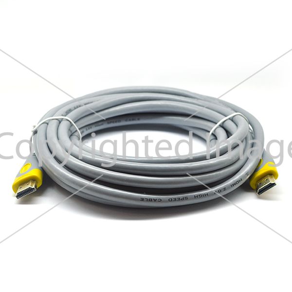 Кабель Merlion HDMI-HDMI V-Link High Speed 10.0m, v2,0, OD-8.2mm, круглий Grey, коннектор Grey / Yellow, (Пакет), Q30