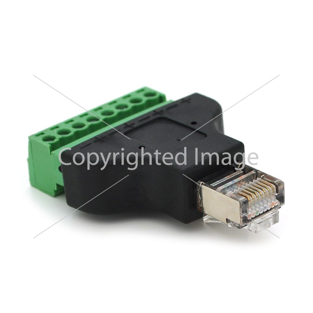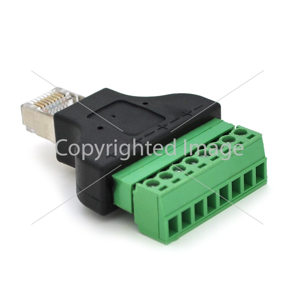 Клемна колодка 8-розрядна Клемна колодка 8-розрядна + RJ45 8P8С папа - перехідник для передачі сигналу за допомогою крученої пари між пристроями, у одного з яких немає роз'єму RJ45.