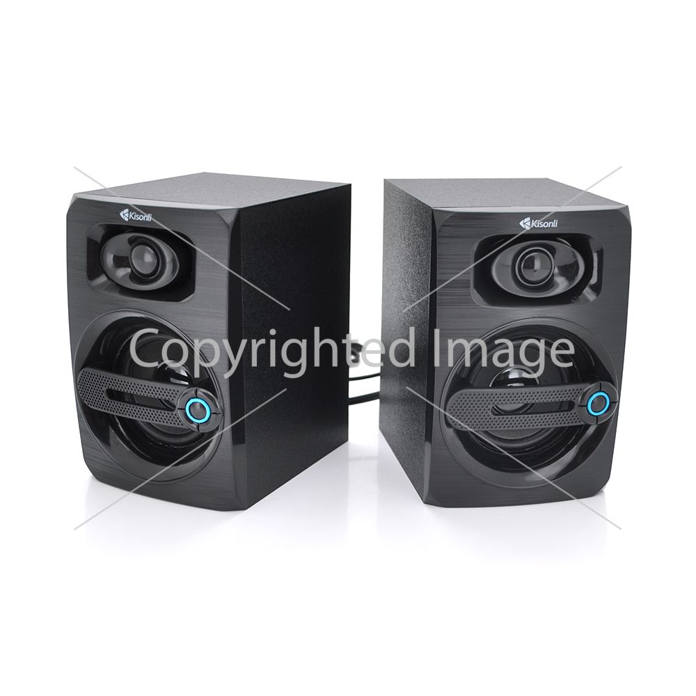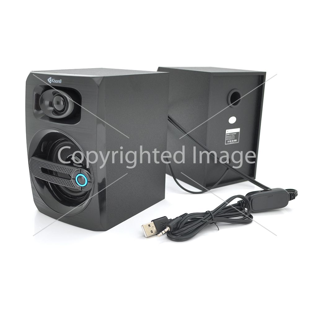 Комп'ютерні колонки Kisonli T-011 забезпечують насичений та якісний звук під час прослуховування музики або перегляду фільмів. Завдяки повнодіапазонним дифузорам усі куточки вашої кімнати будуть наповнені звуком. Система відтворює збалансований звук із глибокими басами. Колонки дозволяють підключати до двох сумісних пристроїв за допомогою входів 3,5 мм та USB. Управління здійснюється через вбудований пульт, на якому розташовані кнопка живлення, регулятори гучності та низьких частот, роз'єм для навушників та допоміжний роз'єм.