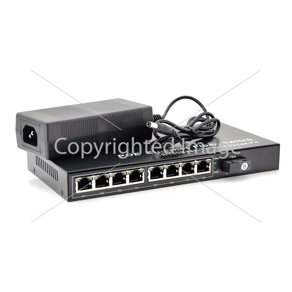 Комутатор POE з вбудованим SFP (B) 48V-57V, 8 портів PoE + 1 порт Ethernet FX 155 Мбіт / с (UP-Link) SC / FC / ST 1550nm, 802.3af, Black, БП в комплекті