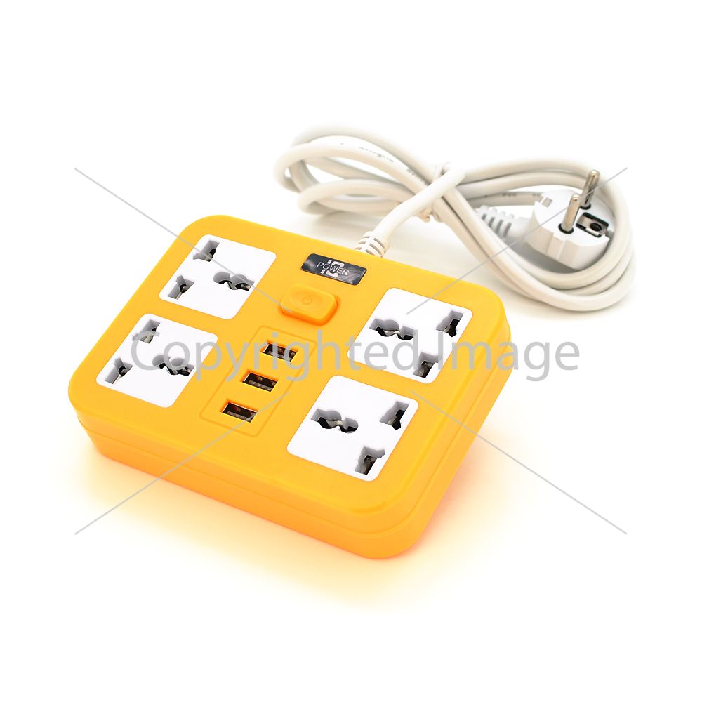 Мережевий фільтр ТВ-Т15, 4 розетки + 3 USB, з перемикачем, 2 м, перетин 3х0, 75мм, 2500W, Yellow, Box