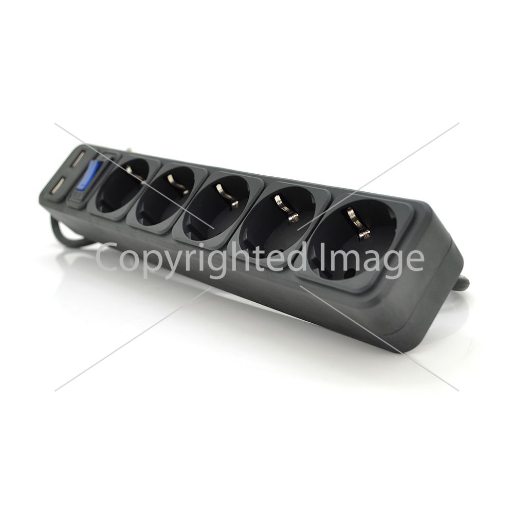 Мережевий подовжувач MERLION B518U, 220В 10А, 5 розеток + 2 порти USB 2.1A, 1,8 м, переріз 3х0,75мм, чорний Q50