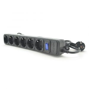 Мережевий подовжувач MERLION B618, 220В 10А, 6 розеток, 1,8 м, переріз 3х0,75мм, чорний Q50