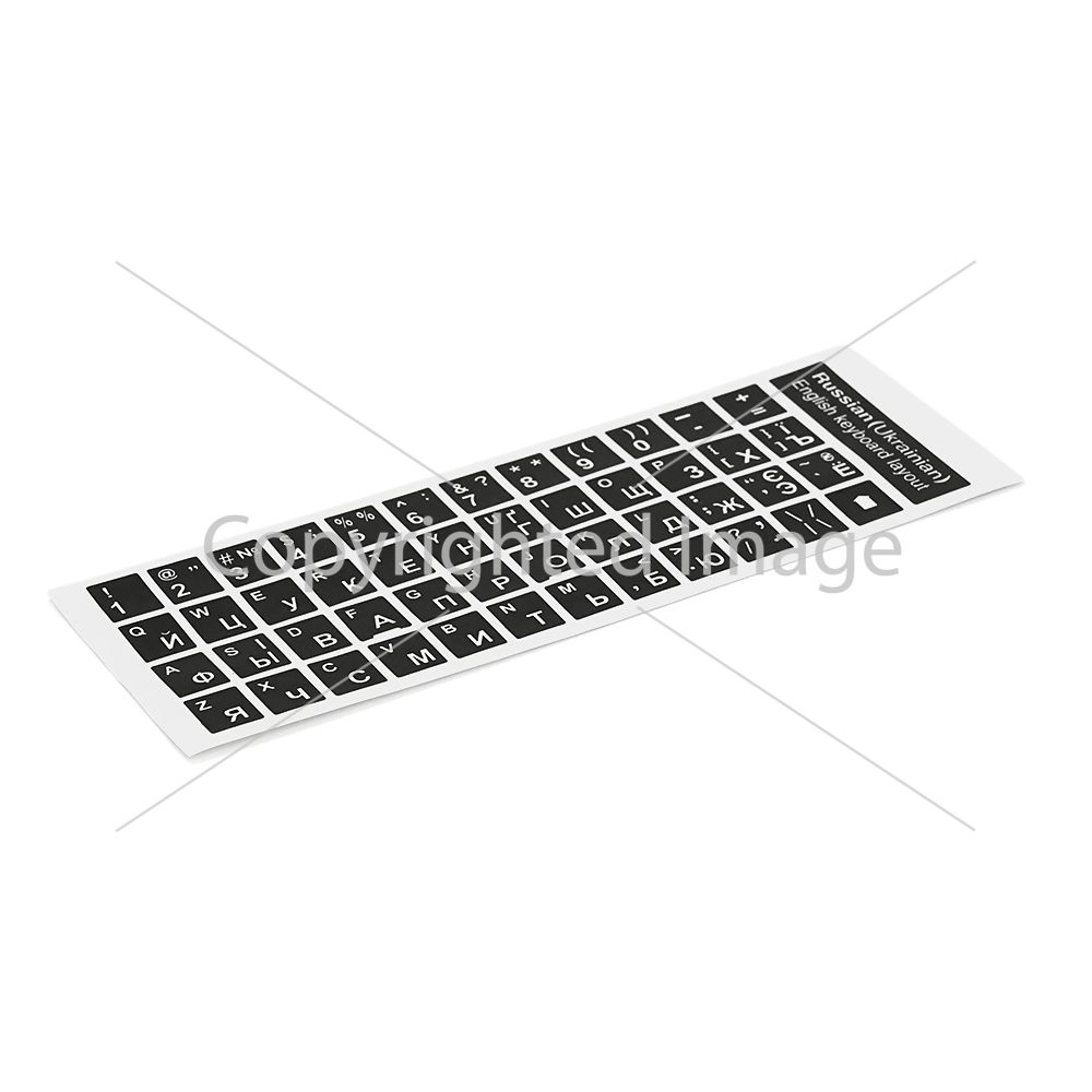 Наклейки на клавіатуру чорні з білими Англ., Укр та Рус.літерами, Q500