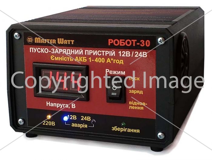 Пуско-зарядне ЗУ РОБОТ-30 для акумуляторів 12/24V (1-400Ah) (MF, WET, AGM, GEL, CA/CA), 160-245V, Струм заряду 20А, крокодили в комплекті