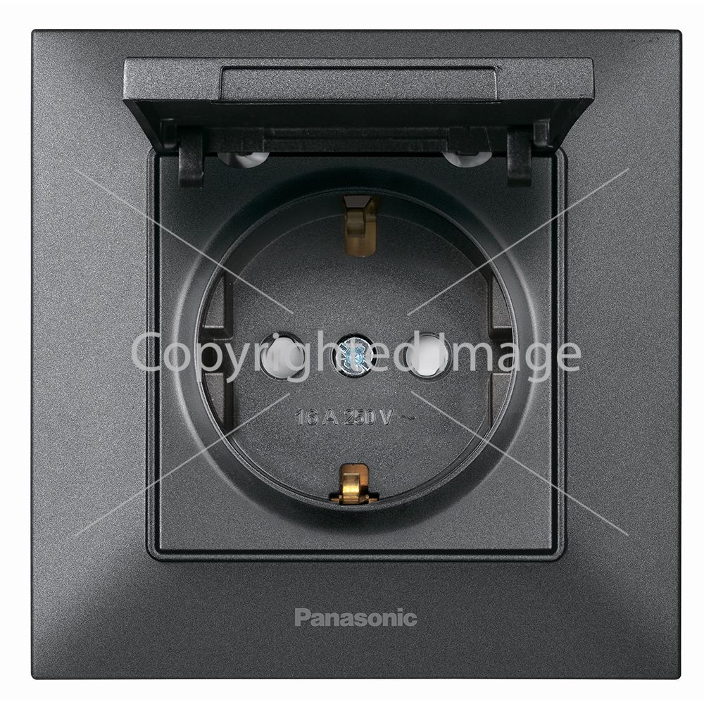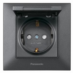 Розетка Panasonic Arkedia Slim із заземленням, зі захисними шторками, з кришкою, димчаста