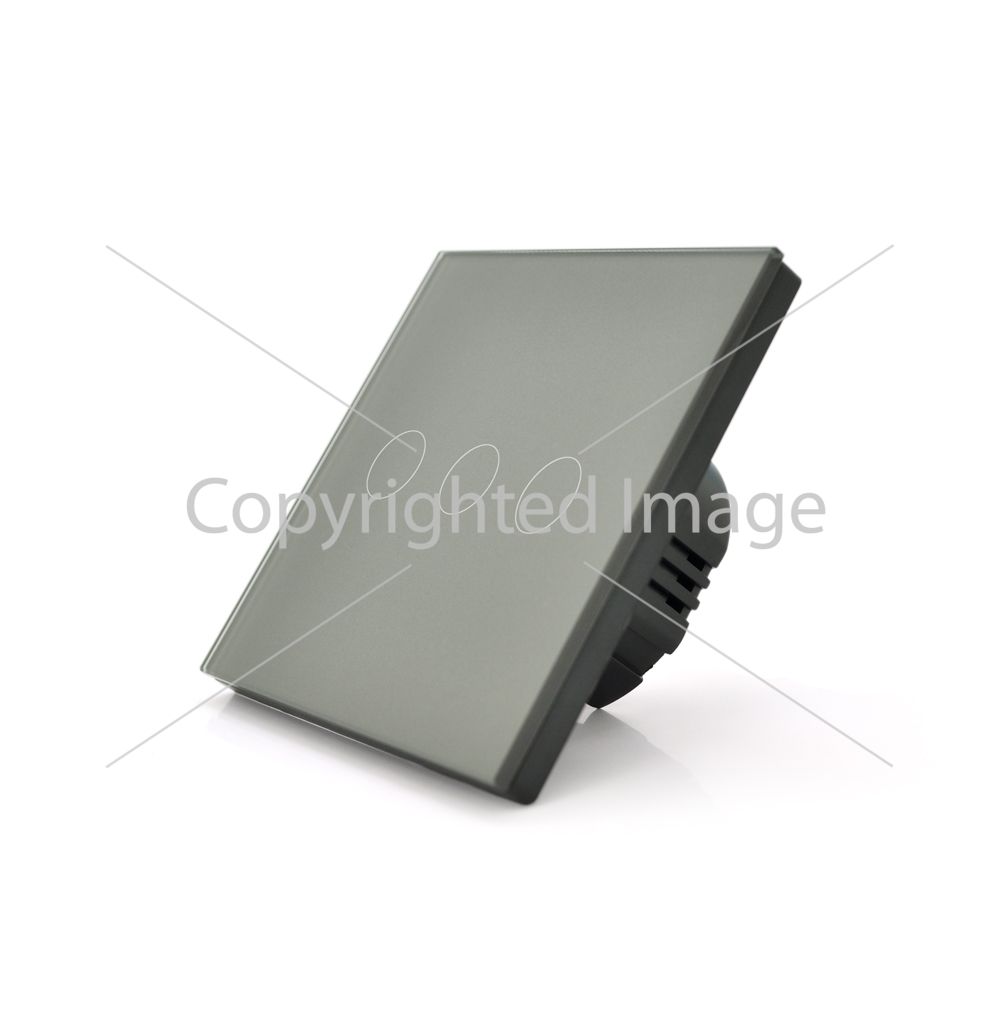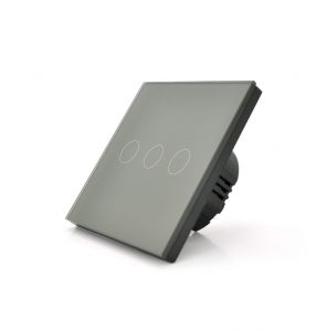 Сенсорний вимикач з заземленням + WiFi керування, трьохканальний, gray, 86х86х35мм