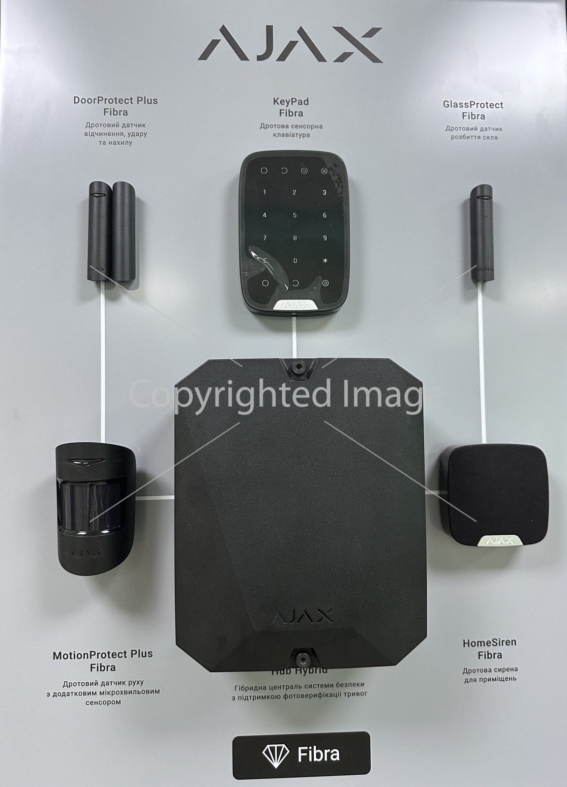 Стенд Ajax Fibra black (DoorProtect Fibra /KeyPad Fibra /GlassProtect Fibra /MotionProtect Plus Fibra /Hub Hybrid /HomeSiren Fibra)