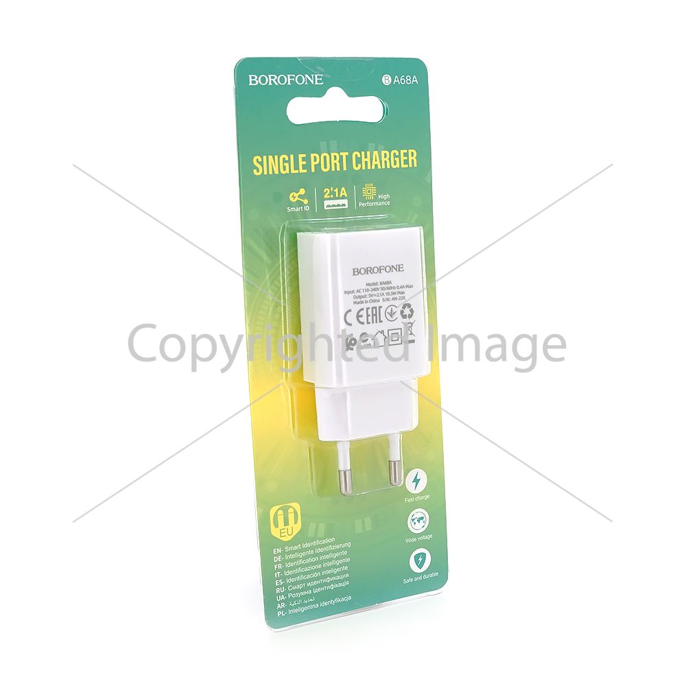СЗУ BOROFONE BA68A 110-240V, 1xUSB, 5V/2,1A, White, Blister-box