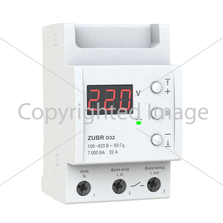 Захисне реле напруги однофазне D32 на DIN-рейку, 32А, 7000ВА, 120-280В, тримодульне з індикатором напруги (Червоний)