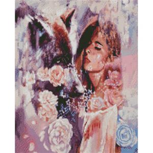 Алмазна картина Strateg ПРЕМІУМ Дівчина та вовк розміром 40х50 см (L-233)