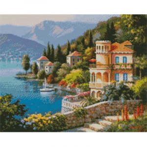 Алмазна картина Strateg ПРЕМІУМ Місто на березі розміром 40х50 см (L-324)