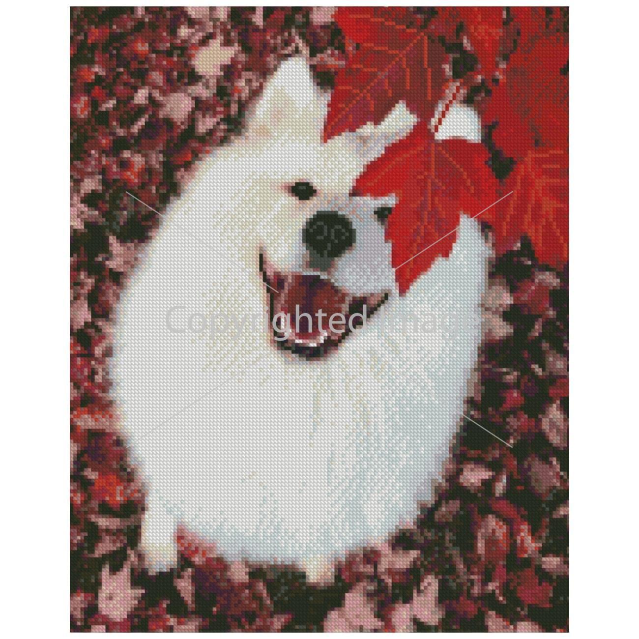 Алмазна мозаїка Strateg ПРЕМІУМ Білий пес 40х50 см FA0013