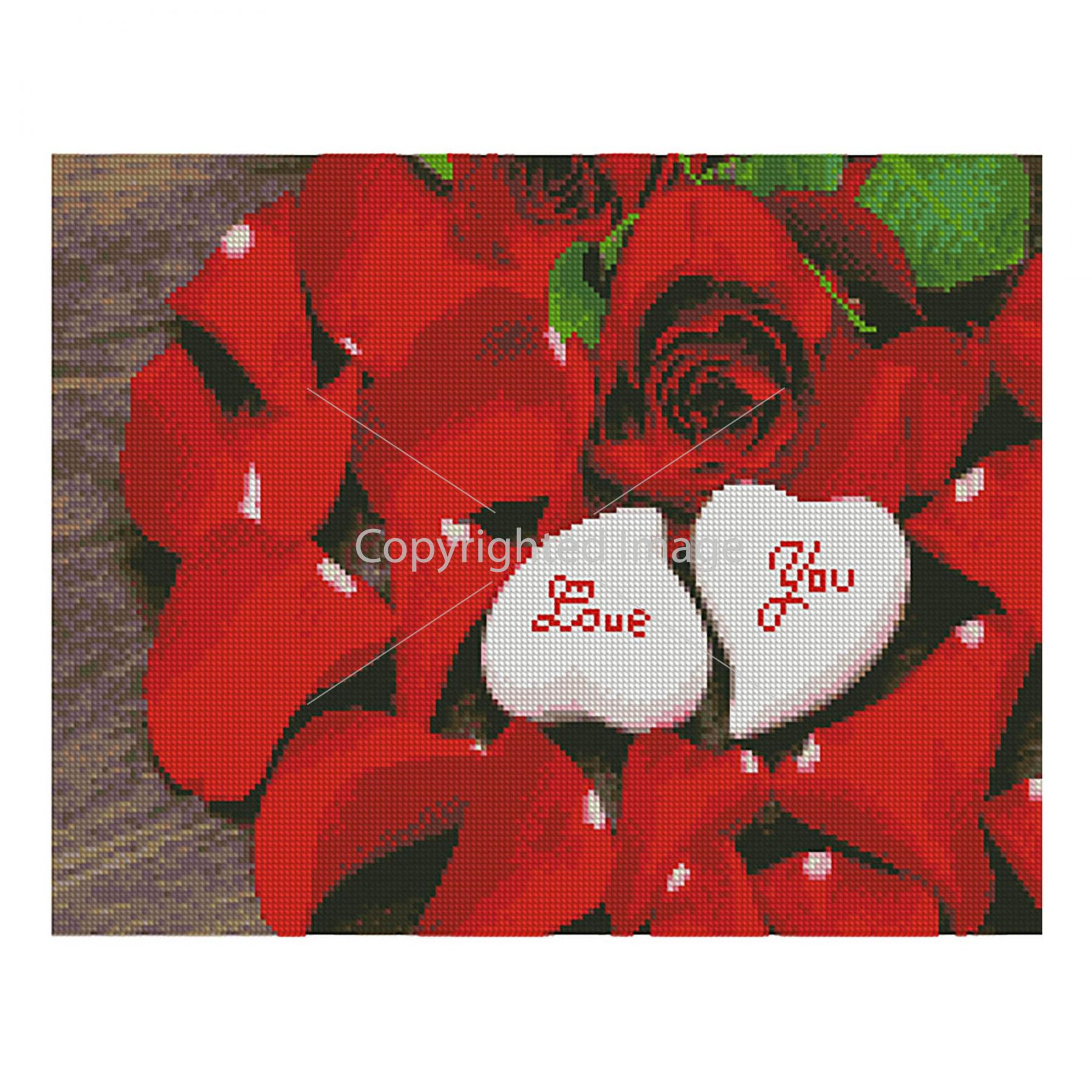 Алмазна мозаїка Strateg ПРЕМІУМ Червоні троянди кохання 40х50 см FA11871