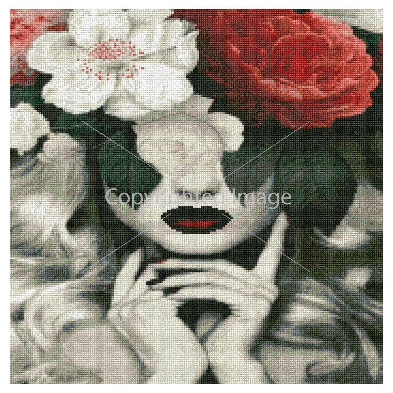 Алмазна мозаїка Strateg ПРЕМІУМ Дівчина з квітами 50х50 см GA0013
