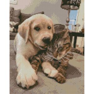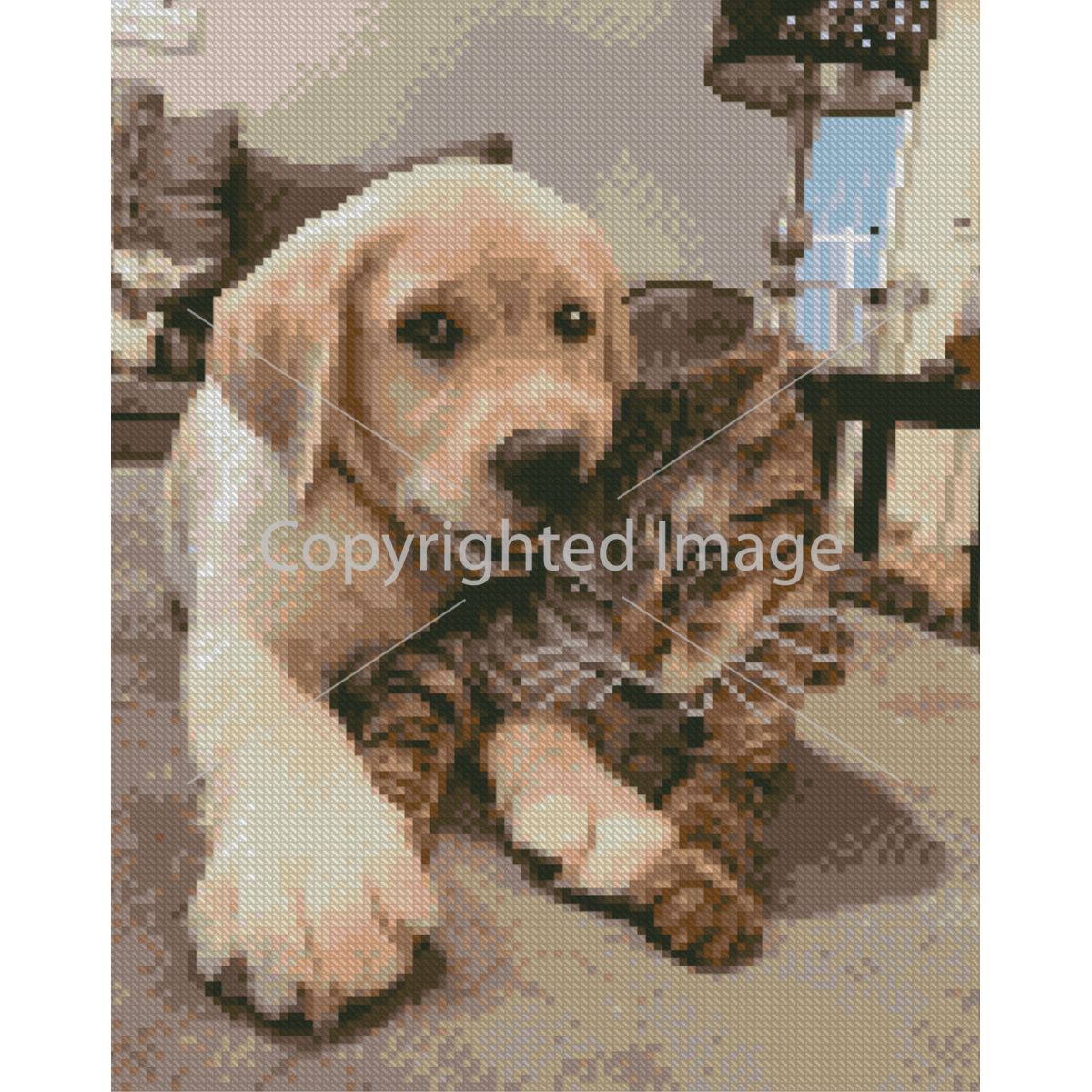 Алмазна мозаїка Strateg ПРЕМІУМ Кіт та пес розміром 30х40 см (HX520)