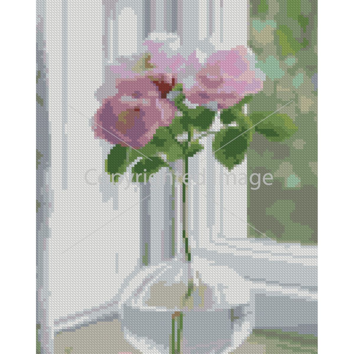 Алмазна мозаїка Strateg ПРЕМІУМ Квітка на підвіконні розміром 30х40 см (HX512)
