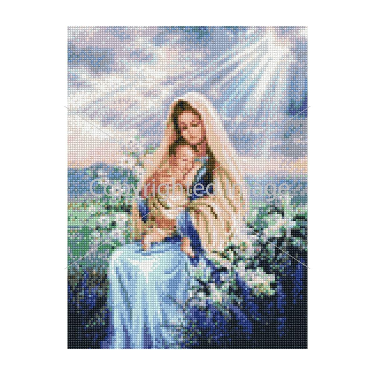 Алмазна мозаїка Strateg ПРЕМІУМ Марія з Ісусом у ліліях 30х40 см HX047