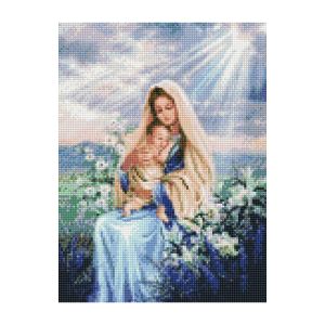 Алмазна мозаїка Strateg ПРЕМІУМ Марія з Ісусом у ліліях 30х40 см HX047 Алмазна мозаїка чи алмазна вишивка – новий вид аплікації. Спеціальні намистини потрібно приклеювати стилусом на полотно. Так ви зможете створити блискавичний шедевр - картину