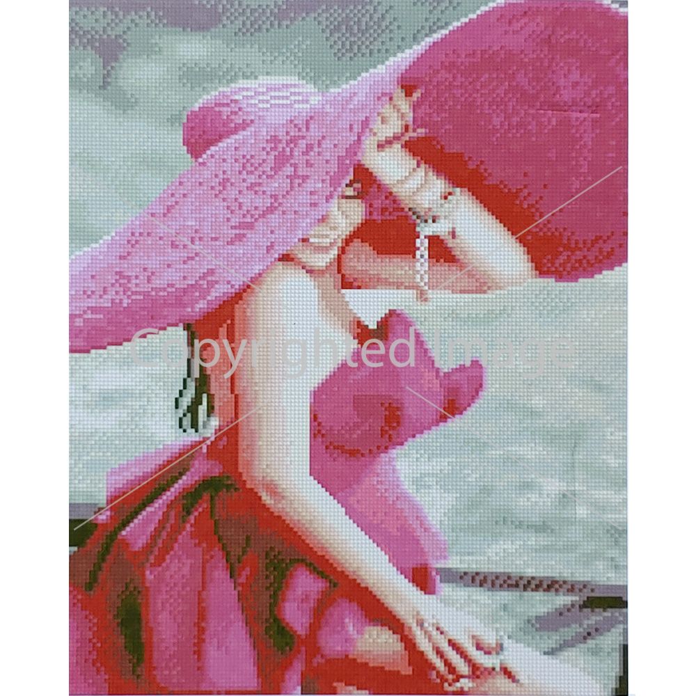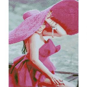 Алмазна мозаїка Strateg ПРЕМІУМ Рожевий капелюх розміром 40х50 см (D0008) - складність 3, кількість кольорів - 28.