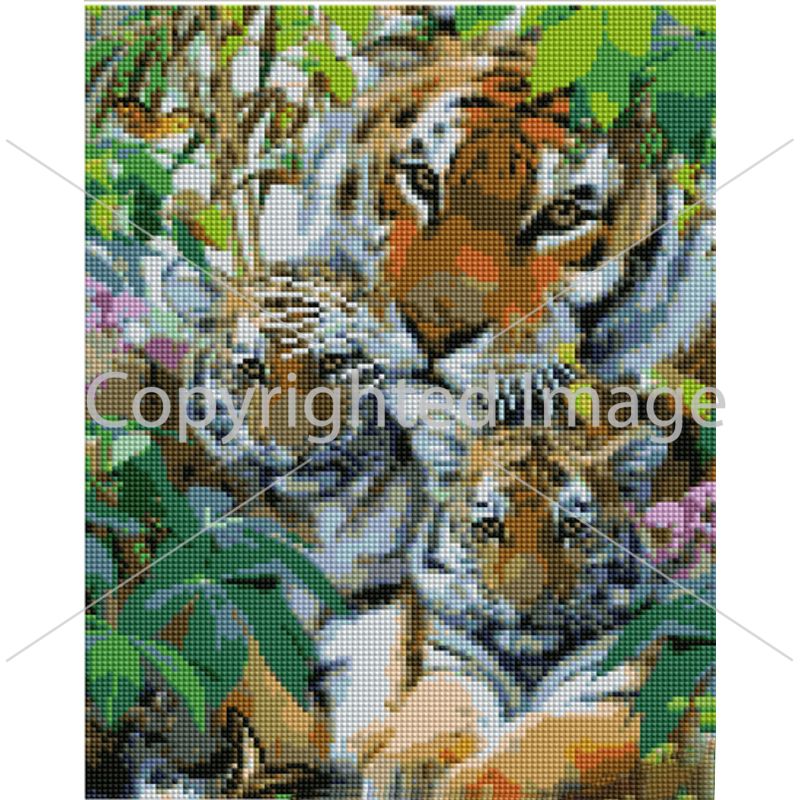 Алмазна мозаїка Strateg ПРЕМІУМ Сім'я тигрів розміром 30х40 см (KB076)