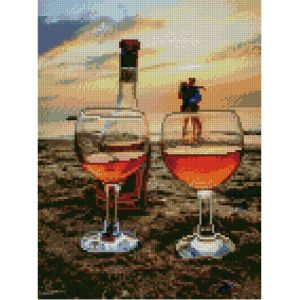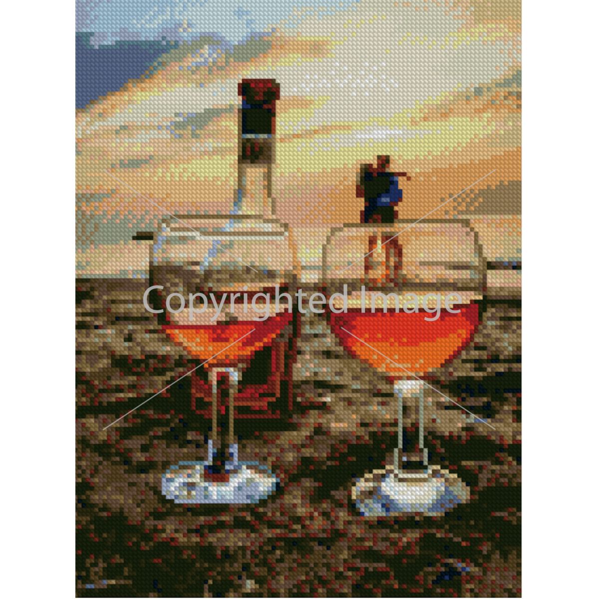 Алмазна мозаїка Strateg ПРЕМІУМ Захід у бокалі 30х40 см HX071