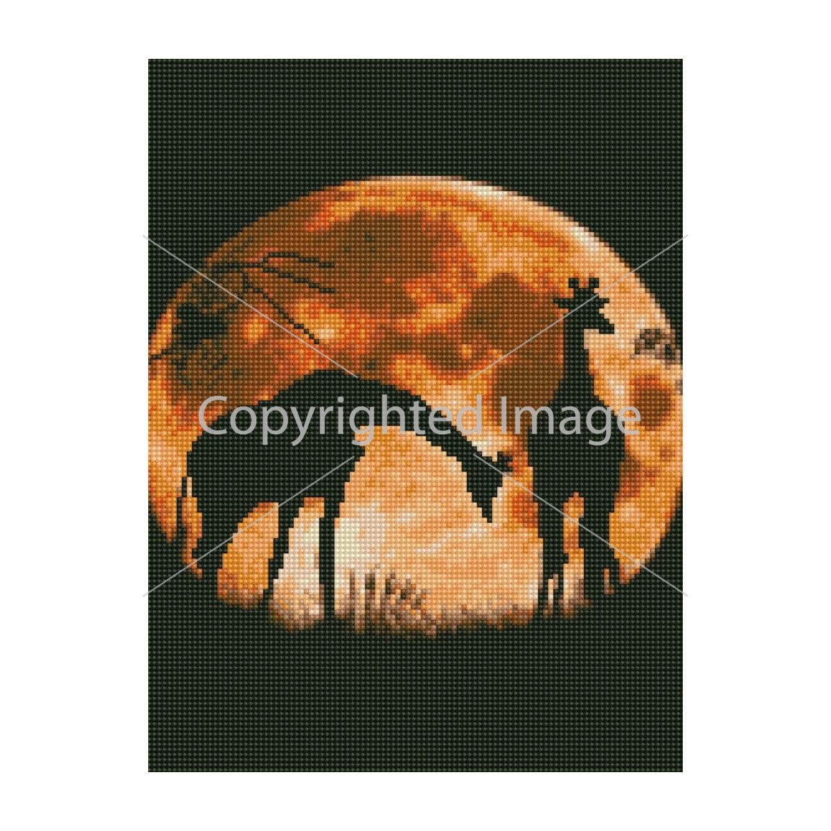 Алмазна мозаїка Strateg ПРЕМІУМ Жирафи на тлі місяця 30х40 см HX025