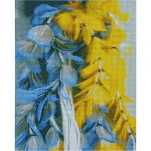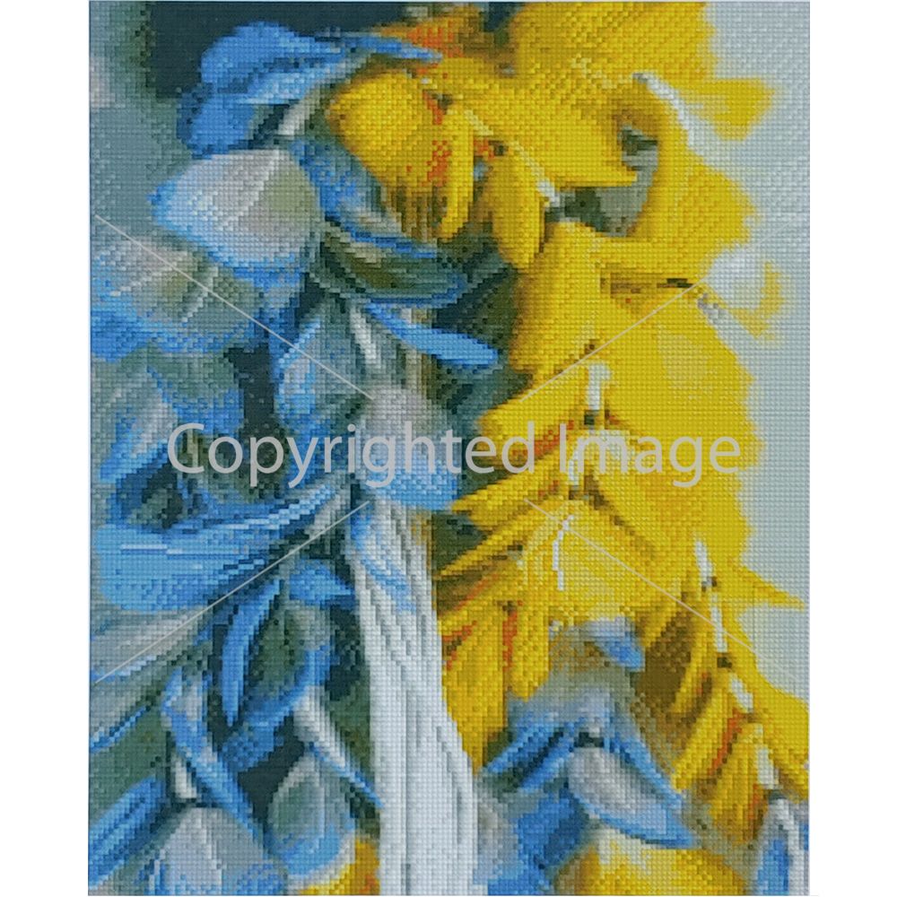 Алмазна мозаїка Strateg ПРЕМІУМ Жовтоблакитне пір'я розміром 40х50 см (D0025) - складність 3, кількість кольорів - 28.