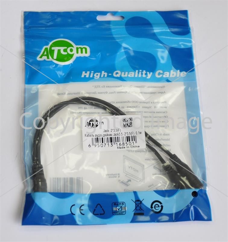 Аудіо-кабель Atcom 3.5 мм - 2х3.5 мм (M/F), 0.1 м, чорний (16850) пакет
