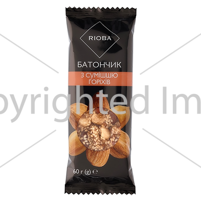 Батончик Rioba з сумішшю горіхів. Продукт готовий до вживання.