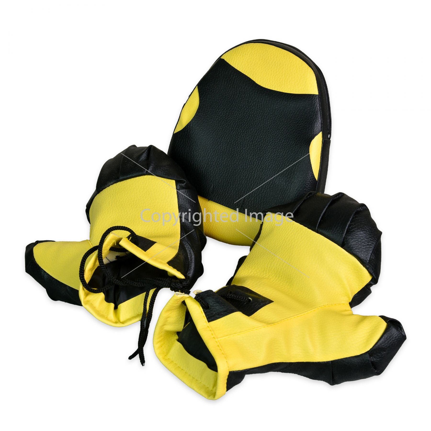 Боксерський набір жовто-чорні рукавички та лапа Strateg (2084)