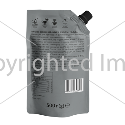 Склад:Цукор, імбир 17%, мед квітковий натуральний 15%, вода питна, лимон, регулятор кислотності кислота лимонна, загущувач пектин, екстракт лемонграссу 0,05%, консервант сорбат калію.
