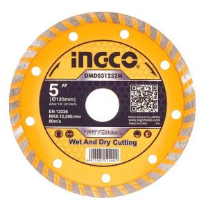 Диск алмазний відрізний INGCO DMD031252M діаметром 125 мм — чудовий різальний елемент для кутової шліфувальної машини. Призначений для сухого та мокрого різання бетону, цегли, натурального і штучного каменю. Скошені грані забезпечують високу швидкість різання, підвищену продуктивність інструменту. Оснащення відповідає стандарту EN13236.