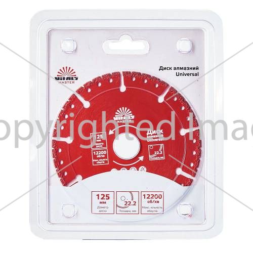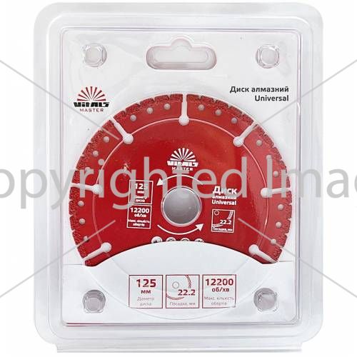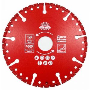 Диск алмазний Vitals Master Universal 125×22,2 призначений для роботи з будівельними матеріалами різної щільності, а саме: метал, пластик, бетон, цегла, камінь, залізобетон.