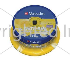 Диск DVD+RW 4,7GB Verbatim Matt Silver 4x Cake 25pcs