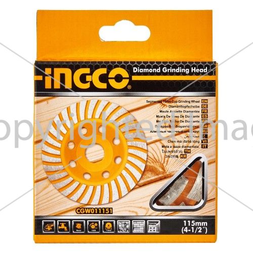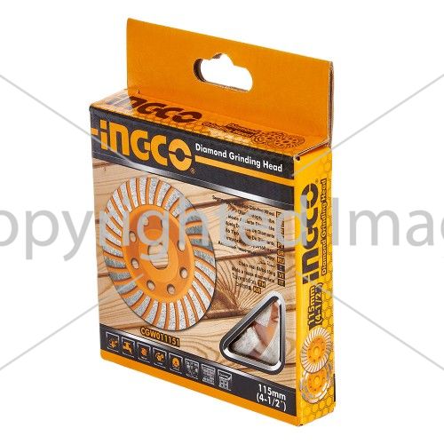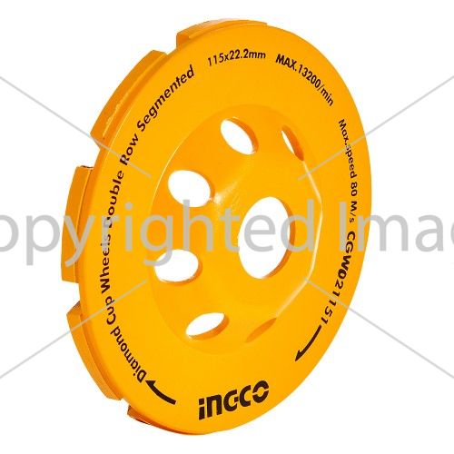 Диск шліфувальний дворядний алмазний чашковий 115 мм INGCO призначений для шліфування поверхонь з каменю, бетону, мармуру, граніту, як робочий елемент для кутової шліфувальної машини.