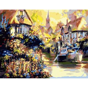 Комплектація:Контейнери з акриловими фарбами; синтетичні пензлики (3 шт.), зразок картини; полотно із розбивкою зображення за номерами; підрамник; кріплення;лак.