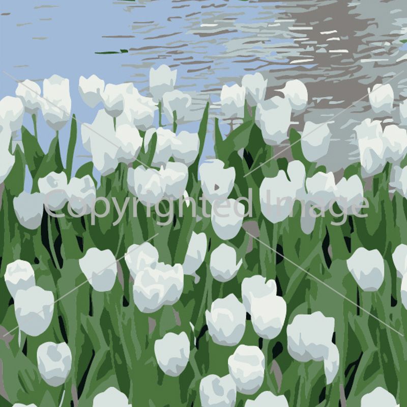 Картина за номерами Strateg Білі тюльпани розміром 20х20 см (HH5908)