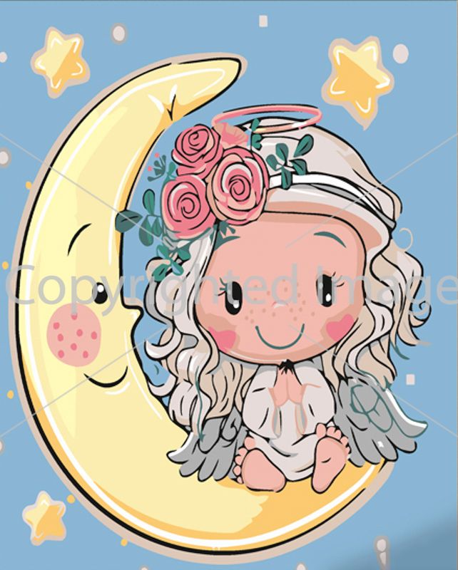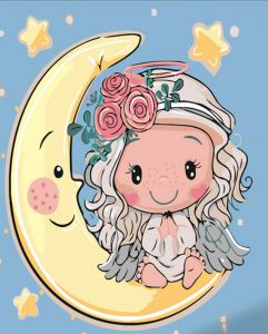 Картина за номерами Strateg ПРЕМІУМ Ангелок на місяці розміром 30х30 см (ES137)