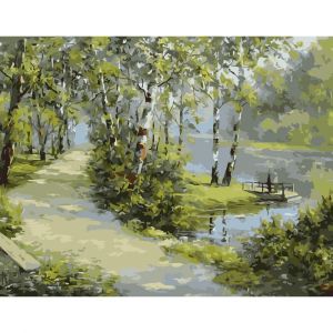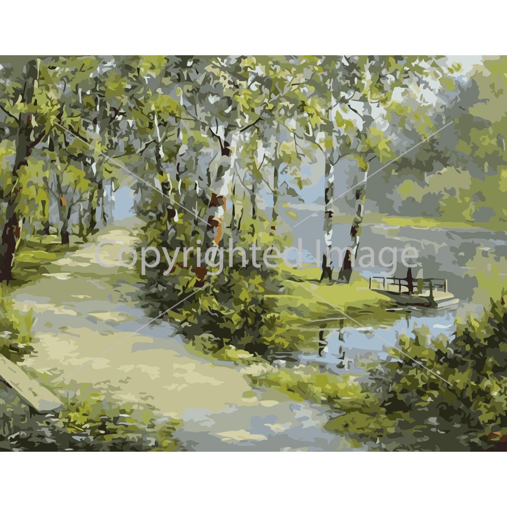 Картина за номерами Strateg ПРЕМІУМ Берези біля пруда розміром 40х50 см (GS094)