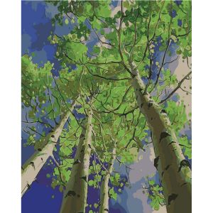 Картина за номерами Strateg ПРЕМІУМ Березовий гай з лаком розміром 40х50 см SY6454