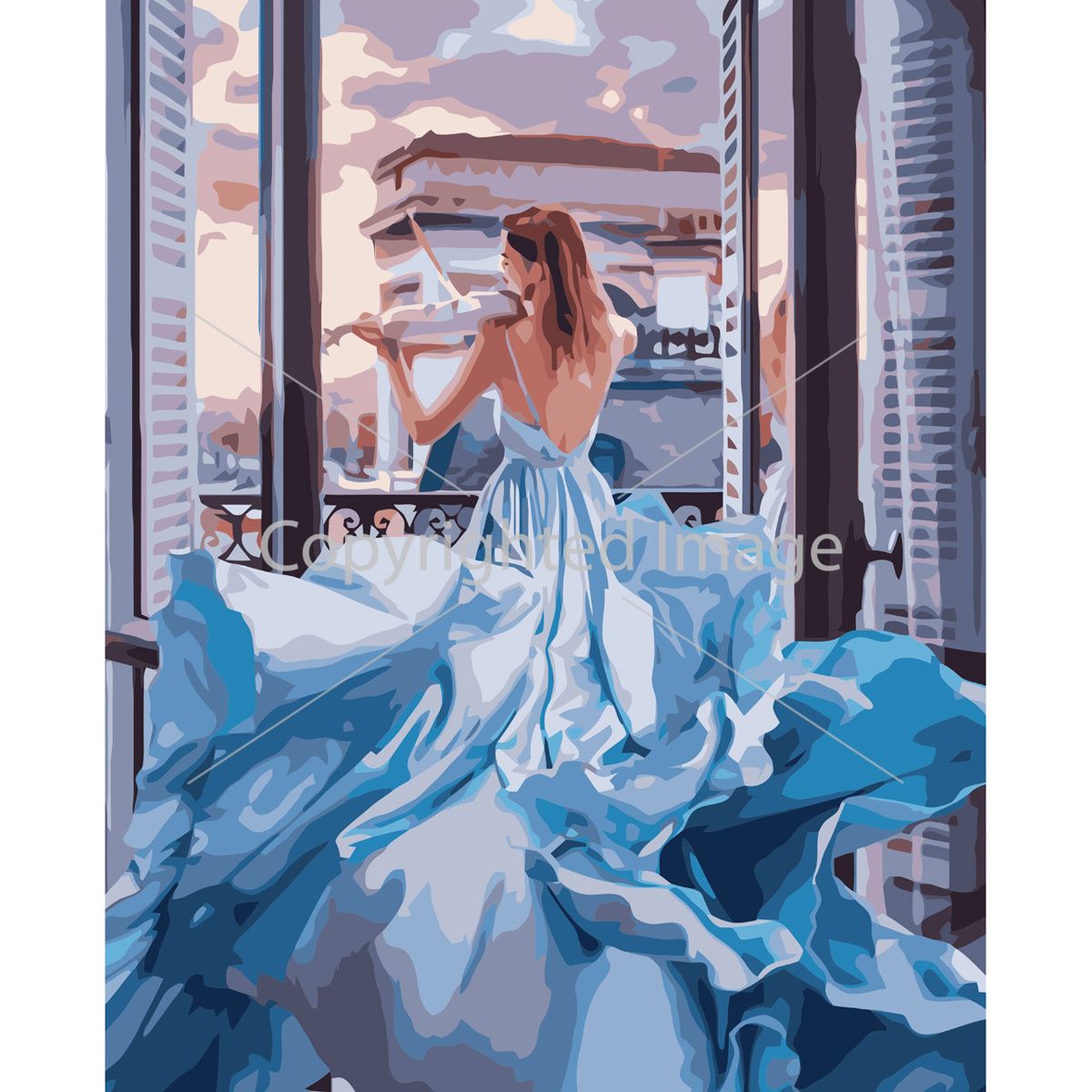 Картина за номерами Strateg ПРЕМІУМ Блакитне плаття з лаком розміром 40х50 см VA-3639