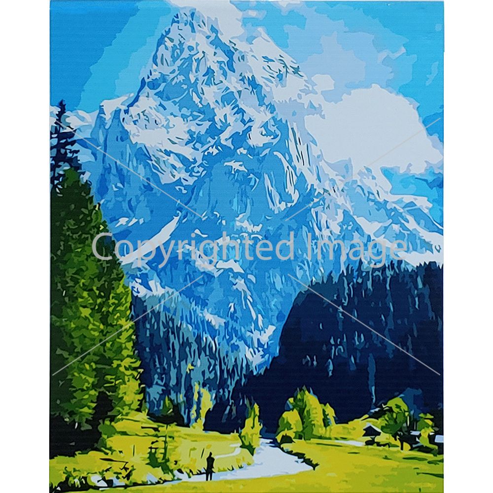 Картина за номерами Strateg ПРЕМІУМ Блакитні гори та зелене поле розміром 40х50 см (GS105)