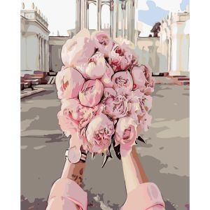 Картина за номерами Strateg ПРЕМІУМ Букет ніжних піонів з лаком розміром 40х50 см SY6117