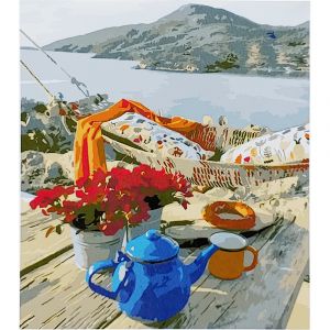Картина за номерами Strateg ПРЕМІУМ Чай на відпочинку з лаком розміром 30х40 см (SS-6560)