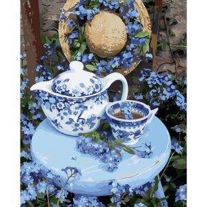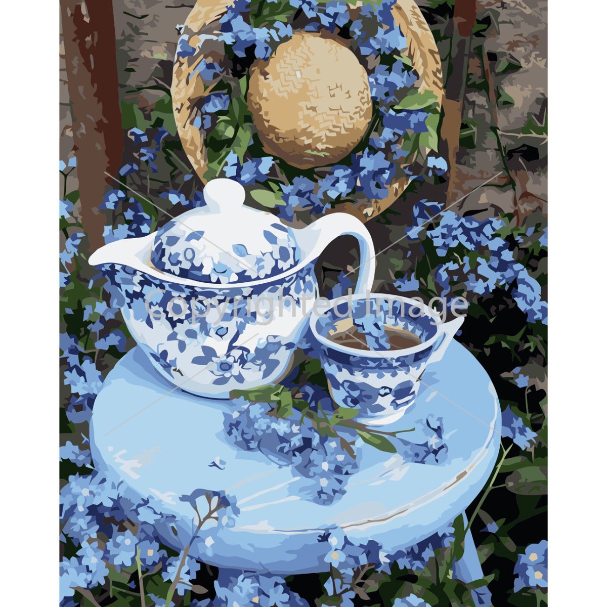 Картина за номерами Strateg ПРЕМІУМ Чаювання з лаком розміром 40х50 см VA-3757