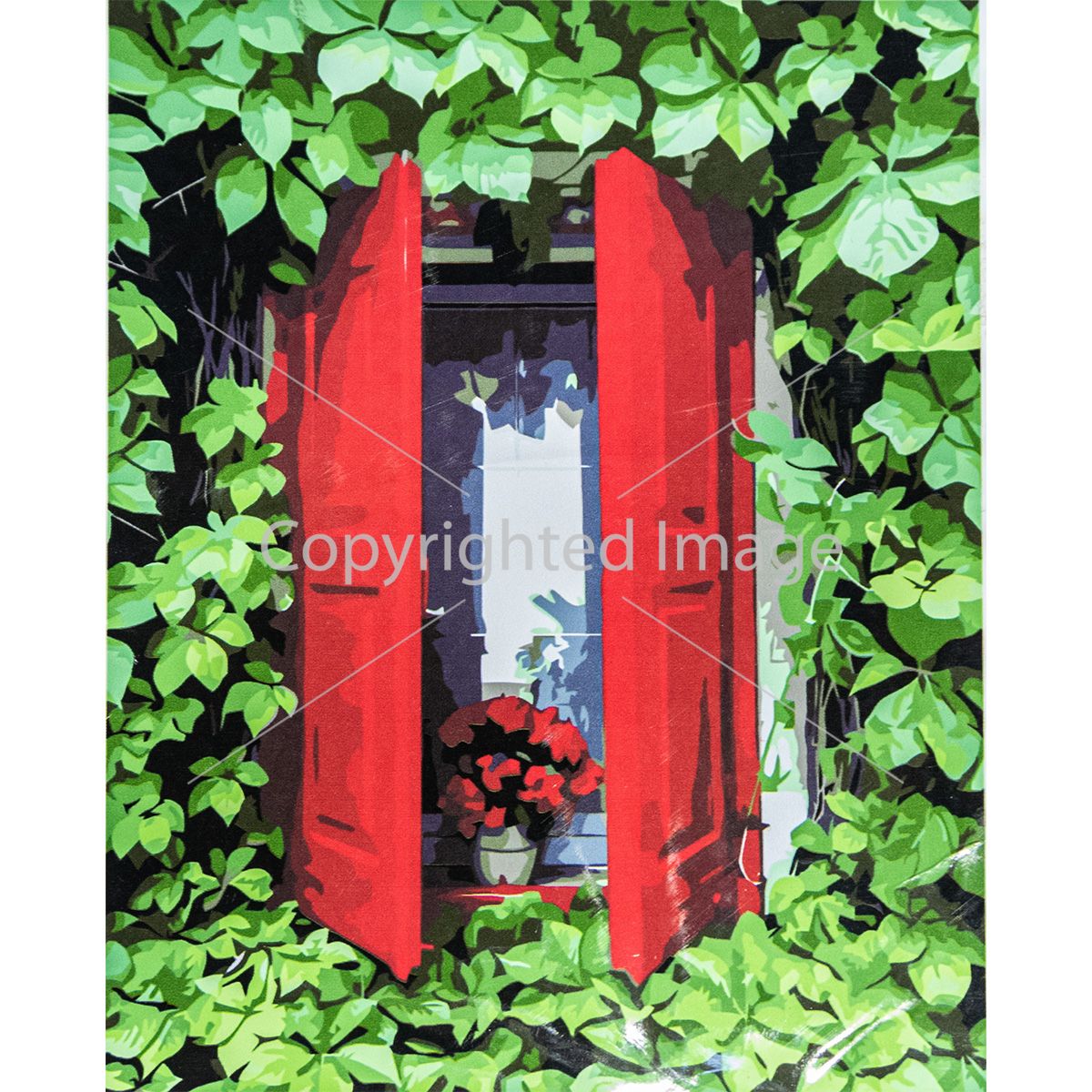 Картина за номерами Strateg ПРЕМІУМ Червоні віконниці з лаком розміром 40х50 см VA-3382