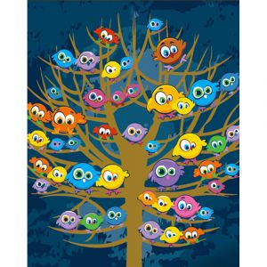 Картина за номерами Strateg ПРЕМІУМ Дерево з пташками з лаком розміром 30х40 см (SS6684)