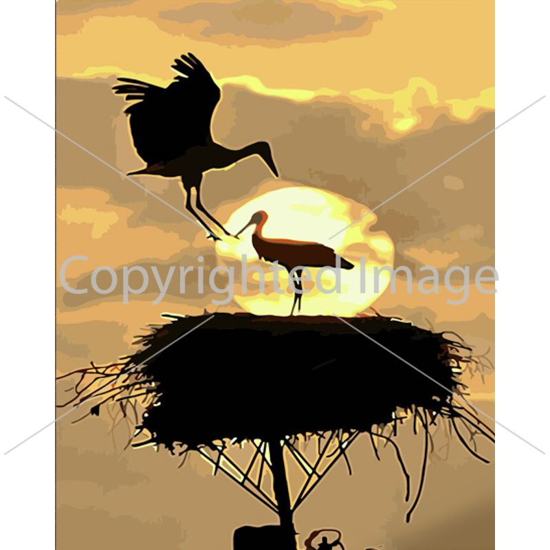 Картина за номерами Strateg ПРЕМІУМ Дім лелек з лаком та з рівнем розміром 40х50 см (DY417)