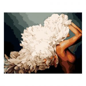 Картина за номерами Strateg ПРЕМІУМ Дівчина і білі півонії з лаком розміром 40х50 см VA-2532